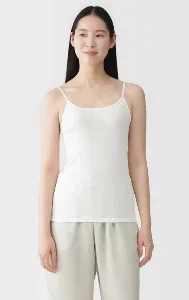 A lightweight women's camisole made from a smooth, breathable organic cotton material that feels cool on the skin, making it a comfortable undershirt to wear even in warm weather. To prevent irritation, there are no side seams, and care labels and tags are printed on the inner side of fabric.